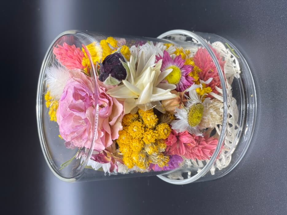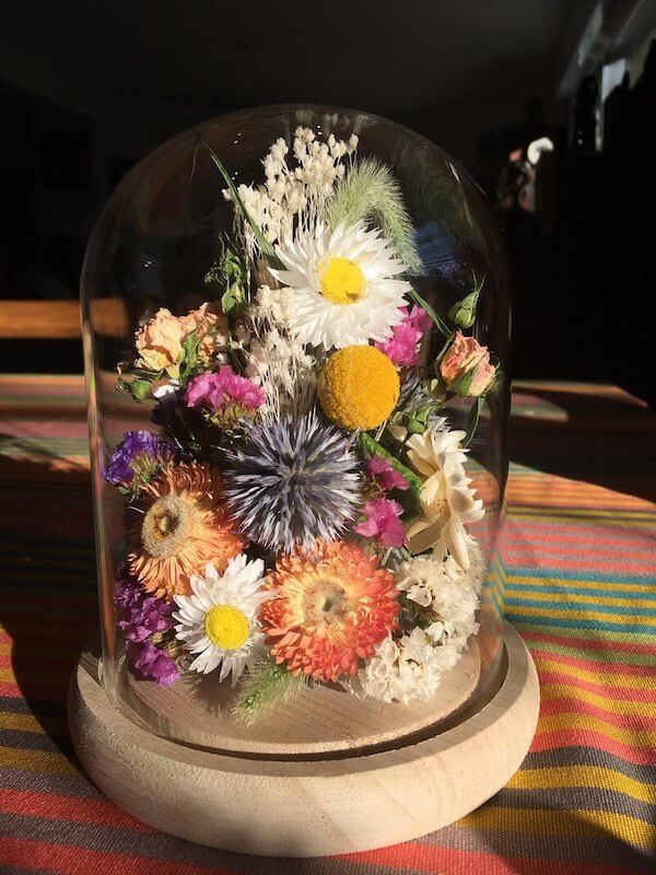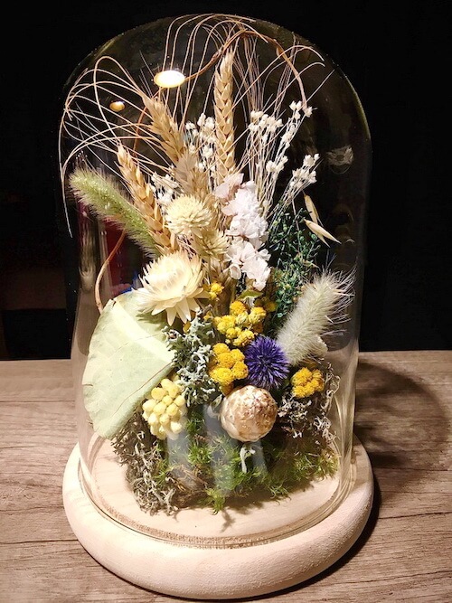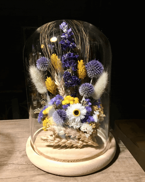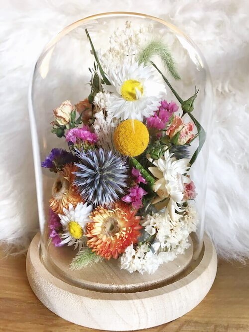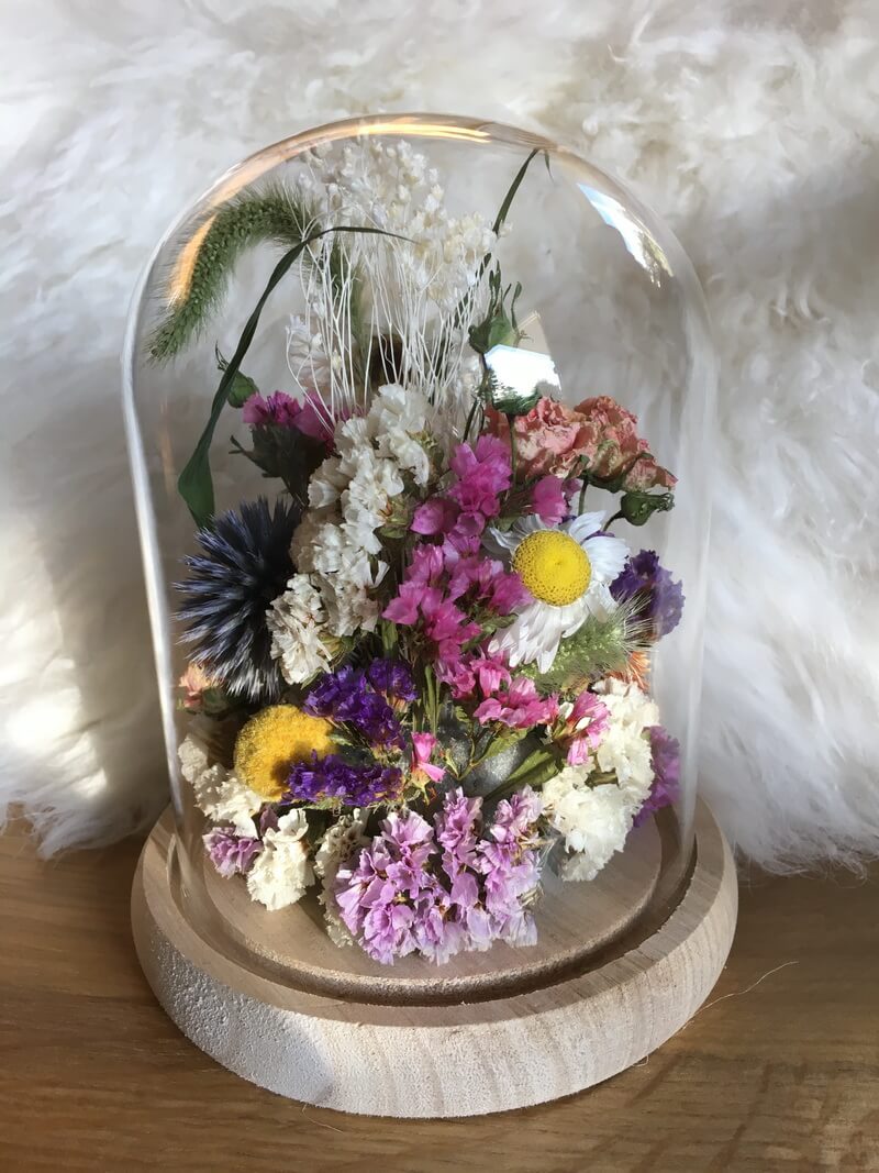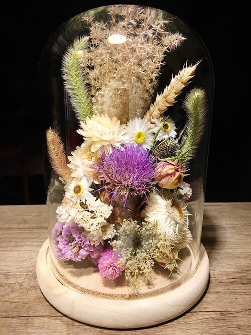 Cloche de fleurs sèches et stabilisées