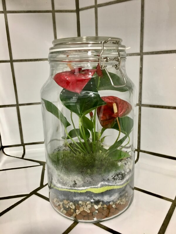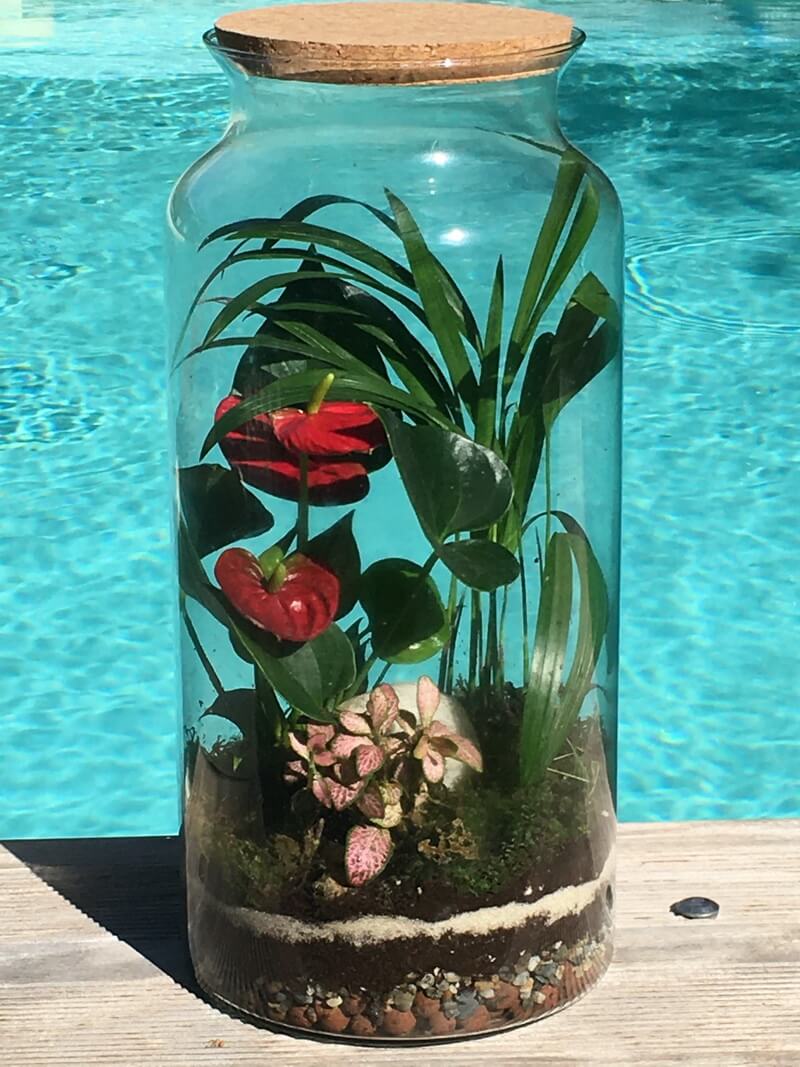 VoirTerrarium plantes exotiques avec Anthurium H31 D21 Création à la demande.