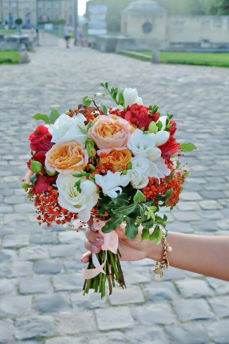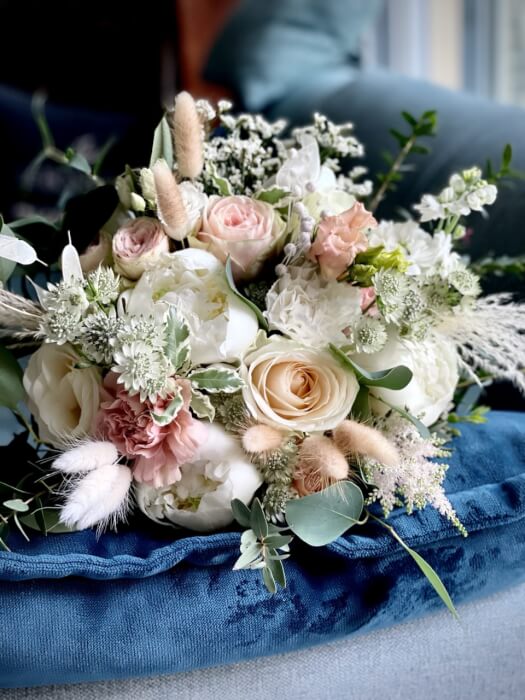 Composition en fonction du thème de votre mariage, vos couleurs, votre robe, tout en tenant compte de saison.