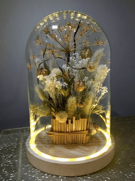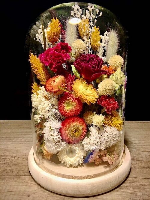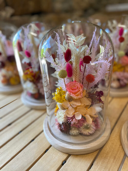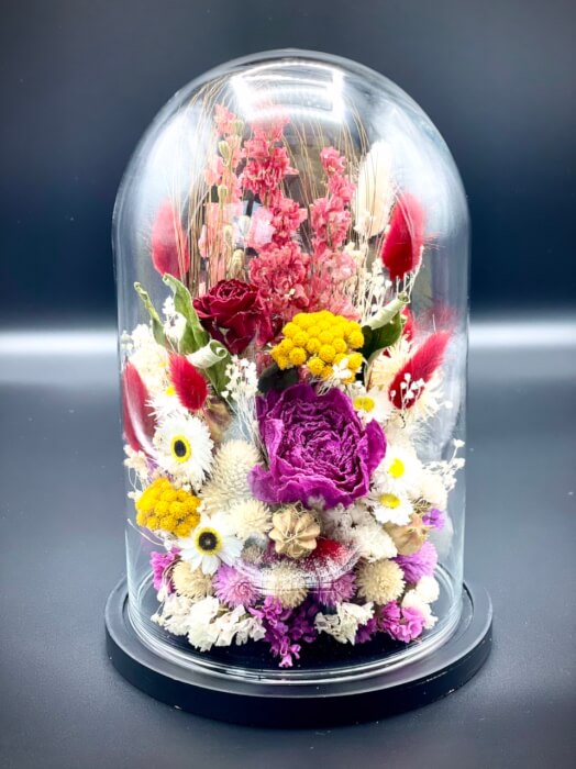 Cloche de fleurs sèches et stabilisées