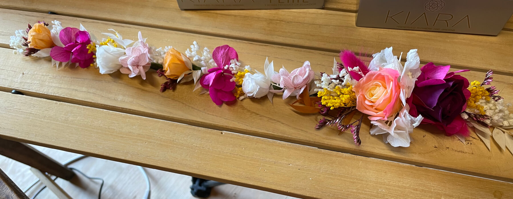Couronne en fleurs stabilisées et séchées