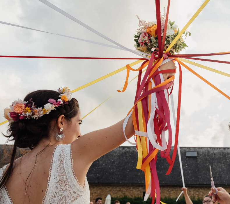 VoirA qui le bouquet ? pour un mariage dans l'année qui suit? Rubans aux couleurs de votre mariage