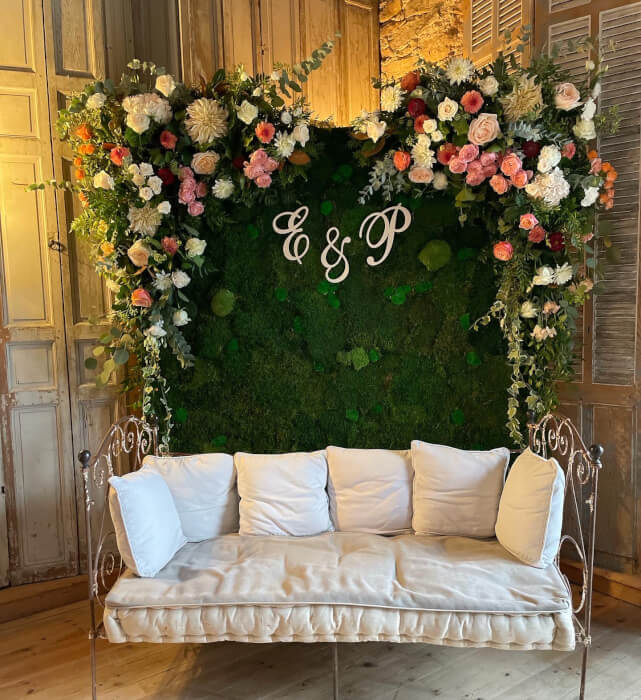 Couronne de fleur, bouquet de mariée, boutonière, arche...