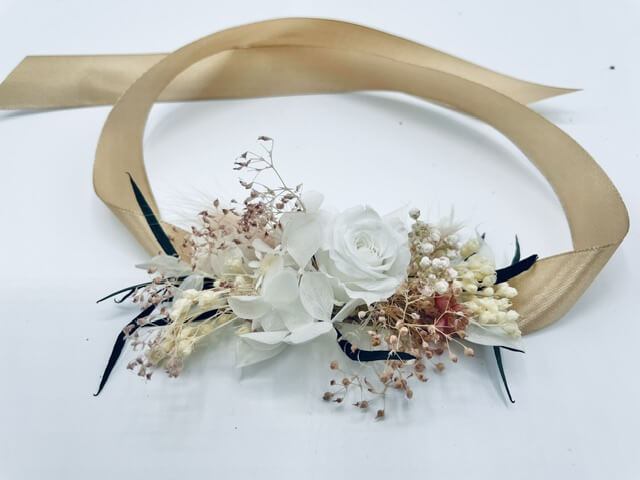 Pour faire rayonner votre tenue et faire plaisir à ceux qui vous sont chers, création de boutonnières, de couronnes de fleurs, de peignes, de bracelets fleuries...